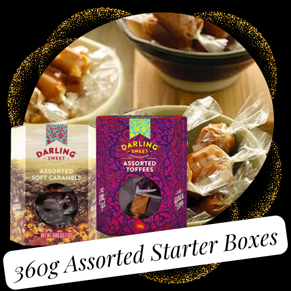 Starter box contains 6 x 360g (3 units of 360g Assorted Toffees and 3 units of 360g Assorted Soft Caramels)Â starter boxes.