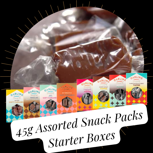 Starter box contains 40 x 45g (2 x Display Units = 1x 20 Assorted Soft Caramels and 1x 20 Assorted Toffees) starter boxes.