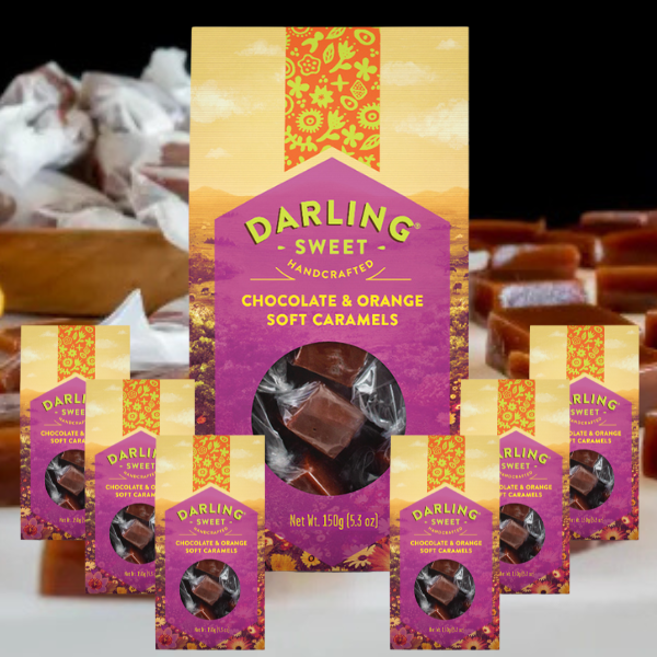 Box contains 6 x 150g chocolate & orange soft caramels boxes